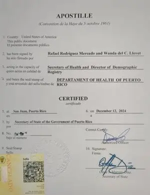 - How can I obtain an apostille for a Puerto Rico birth, death or marriage certificate?